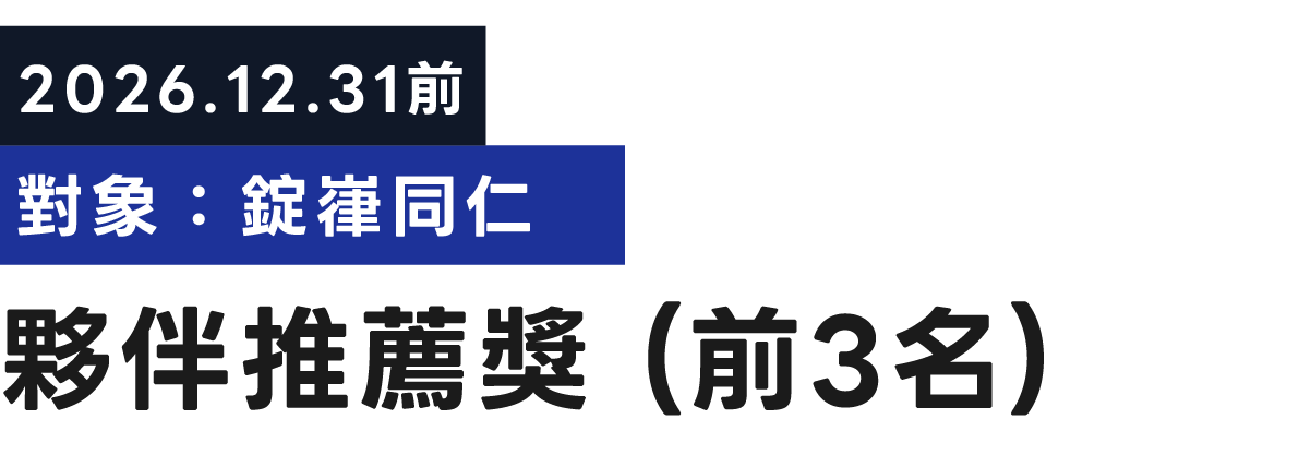 若後續完成培訓並正式成為錠嵂夥伴,方可依活動規則參與以下相關獎勵活動。