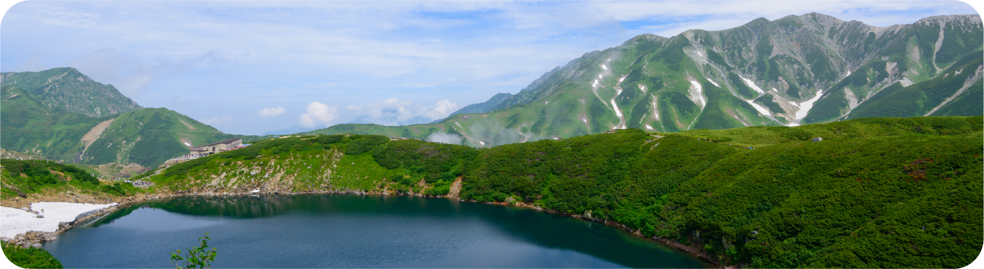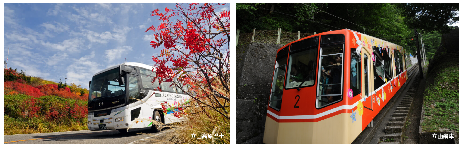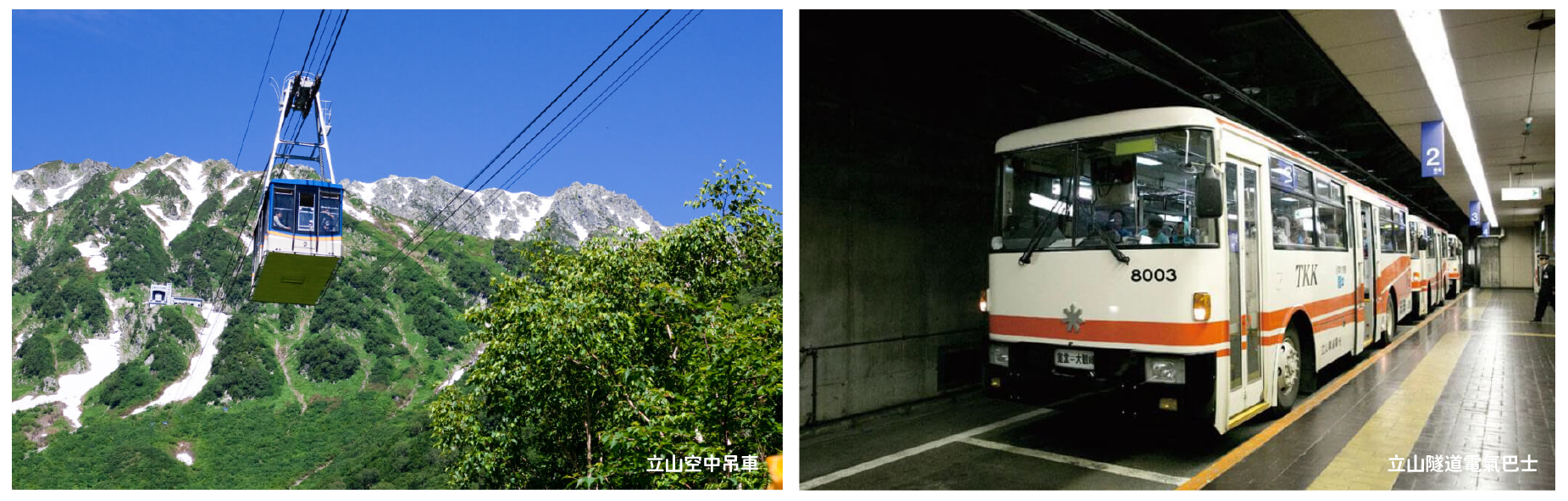 專車前往「中部山岳國家公國」的入囗玄關:扇澤車站,轉乘六種登山交通設施,最高點到達海拔 2450 公尺的室堂,沿途高山四季的綺麗景觀,以及工程建設的鬼斧神工之妙,保證令您嘆為觀止。