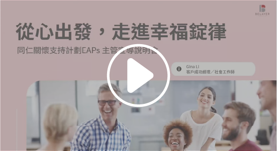 EAPs是公司委託專業第三方提供給同仁的支持服務,我們了解在工作上或生活中可能會面臨各式各樣不同的挑戰,希望透過EAPs完整多樣的內容、實用的檢測工具和全程保密的諮詢服務,讓同仁們能持續展現力量,解決後顧之憂。