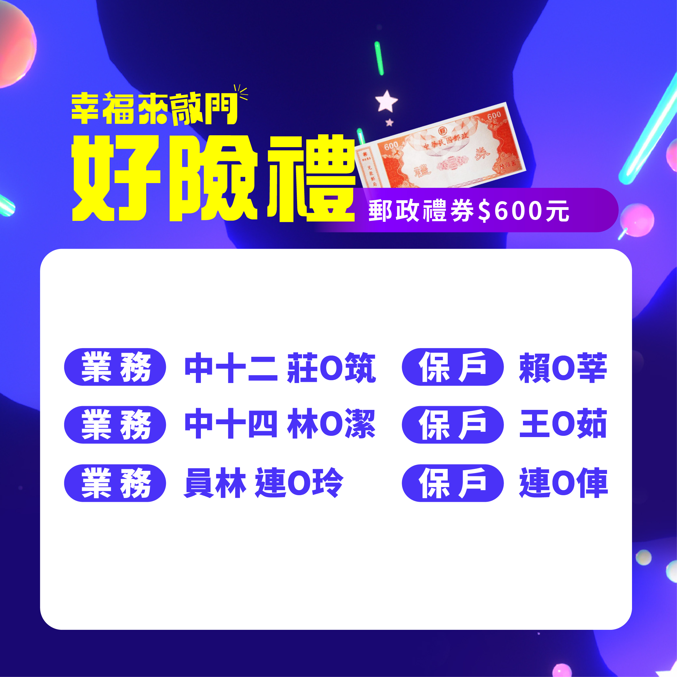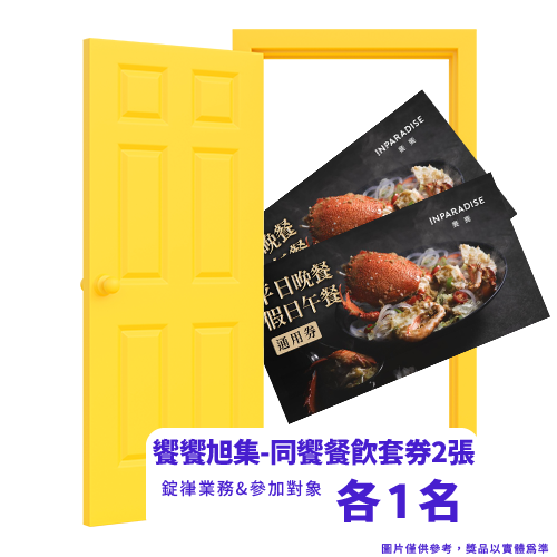 3.本活動限中華民國國籍且在中華民國(包括台灣、金門、馬祖、澎湖)地區設有住居所知本國人參加。每人每獎項僅限一次中獎機會,無法重複中獎。主辦單位有權審核中獎資格。