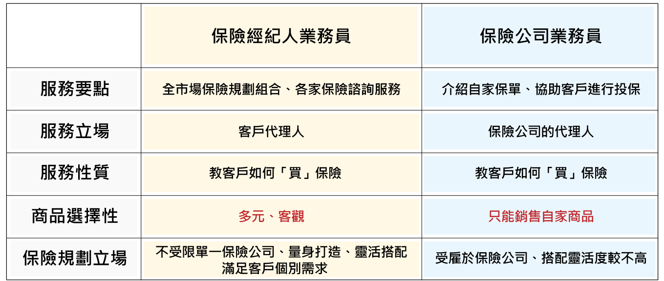兩者都賣相同物品,但能販售的商品範圍和銷售立場不太一樣,而在客戶端,購買保單的價格又都相同,因此能販售多家保單的保經業務員,往往更能從市場商品裡規劃出最符合消費者需求的保險組合,受到更多客戶的青睞。